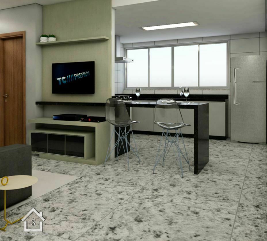 Apartamento tipo, com 40 m² sendo 01 quarto, banho social, sala/copa, cozinha com área de serviço. Uma vaga de garagem.