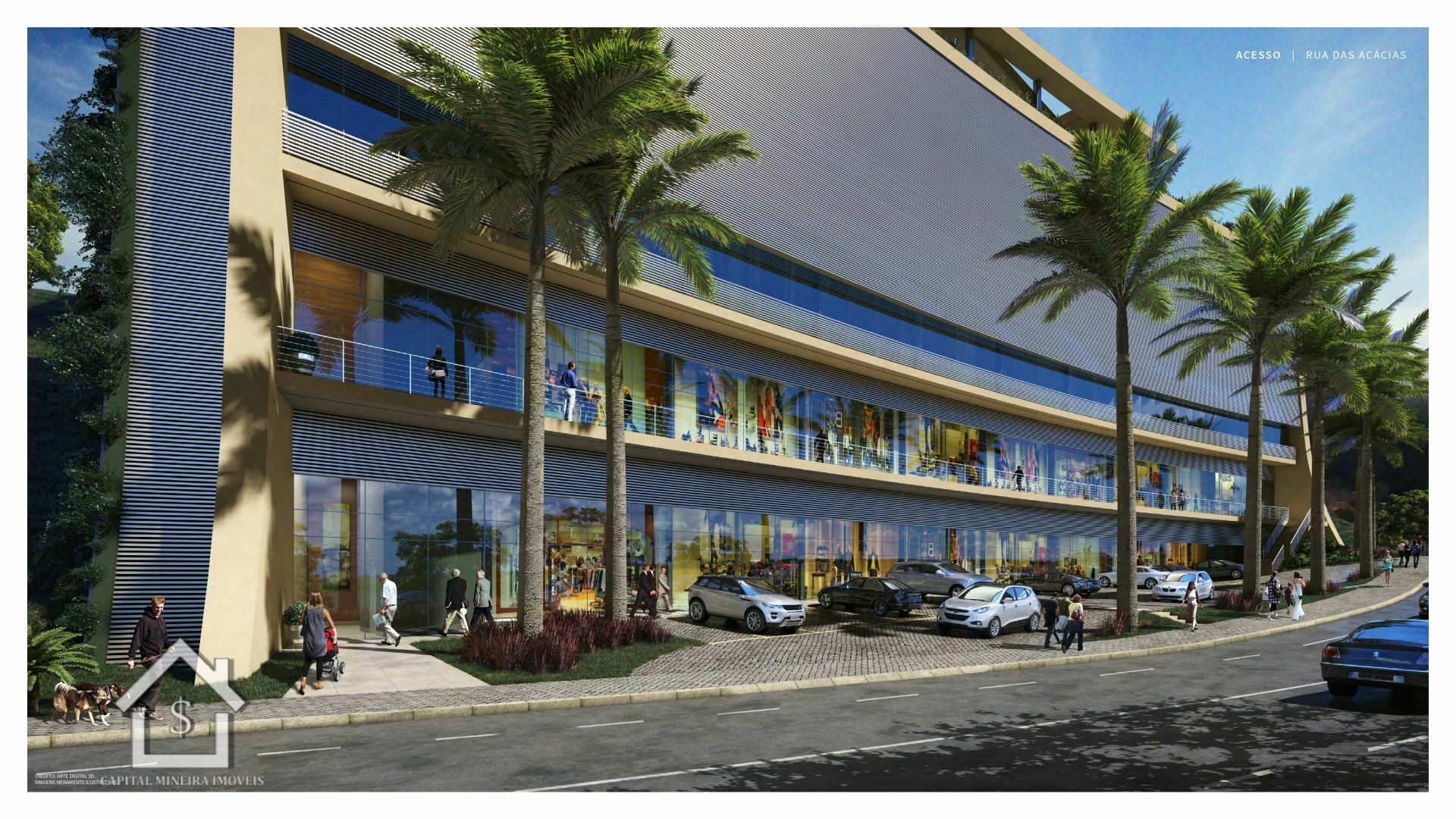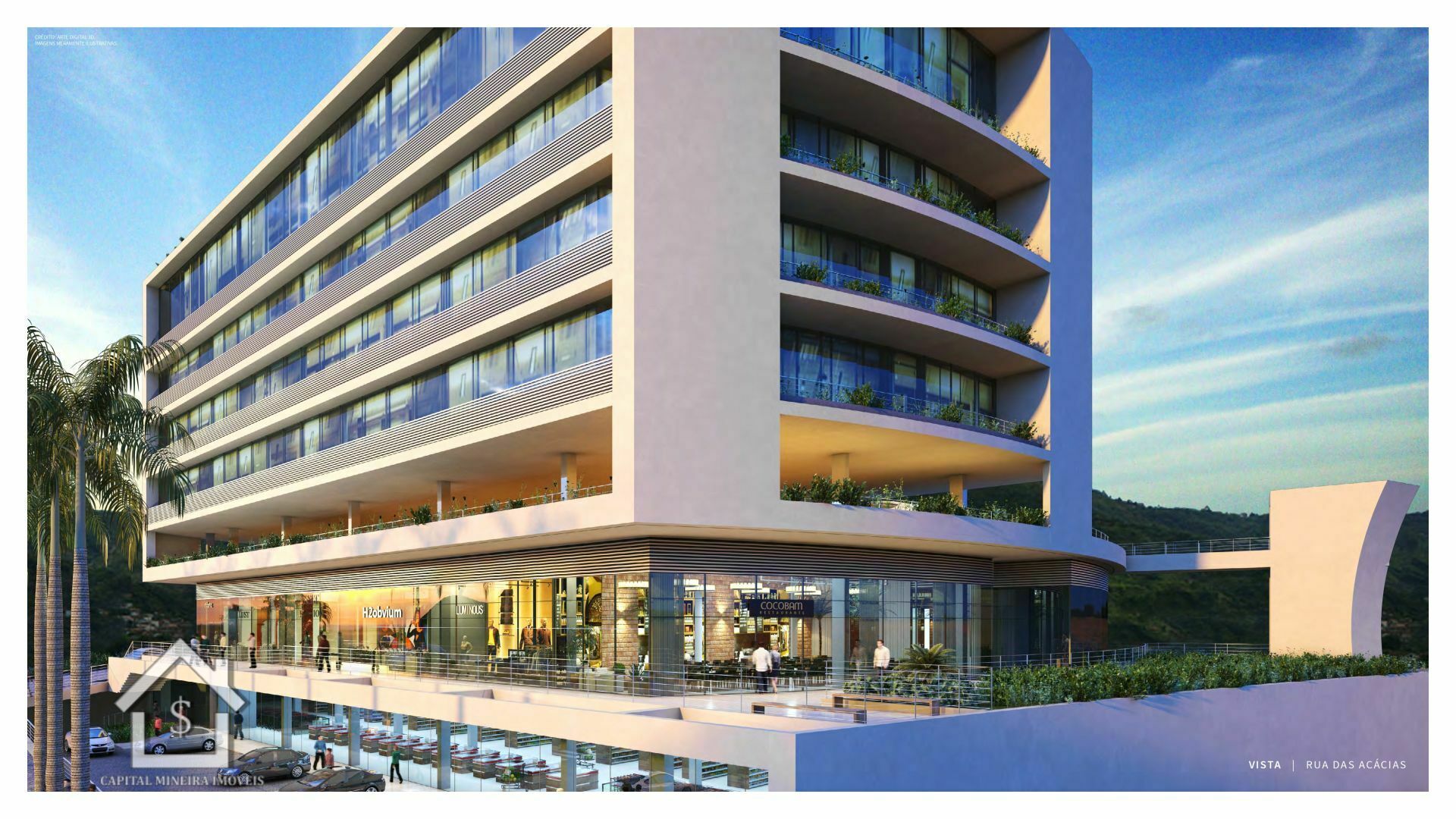 São 19 mil m² de área construída distribuídos em 12 pavimentos sendo, 17 lojas, 48 salas comerciais, 267 vagas de garagem